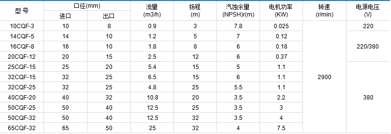 CQF型產(chǎn)品以增強聚丙烯為主材料,泵的過流零部件均為注塑成型,能耐大多數(shù)的有機和無機酸、堿和鹽類溶液,也始于在室外大氣中暴露,對應(yīng)力腐蝕破裂的抗蝕性良好。